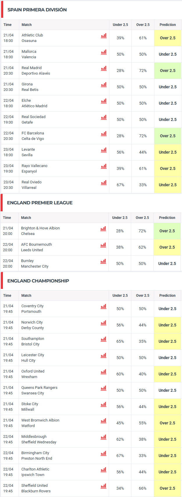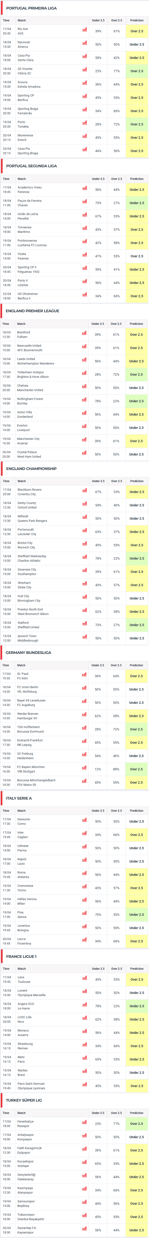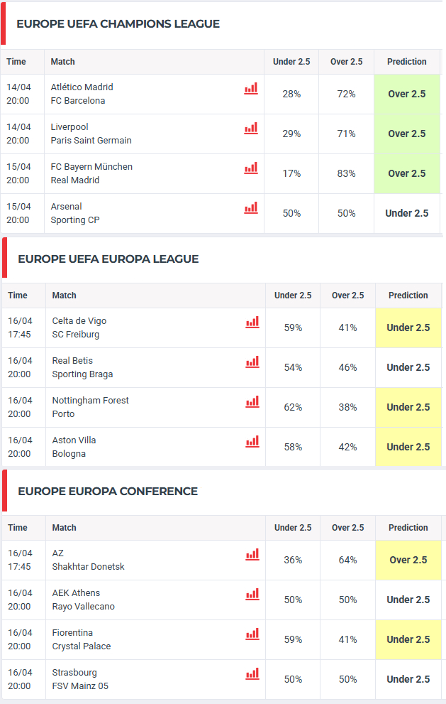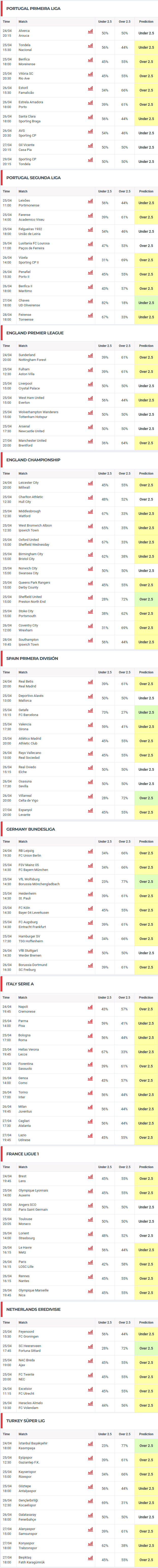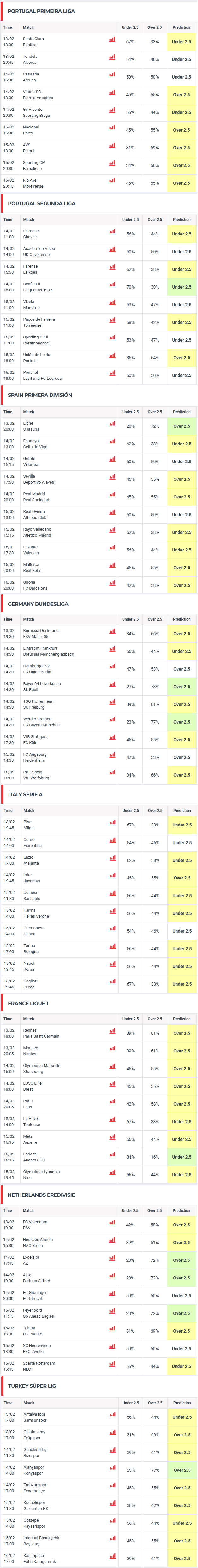 As previsões de resultados são geradas por computador com recurso a um algoritmo matemático. O sistema utiliza os seguintes factores para gerar as previsões: